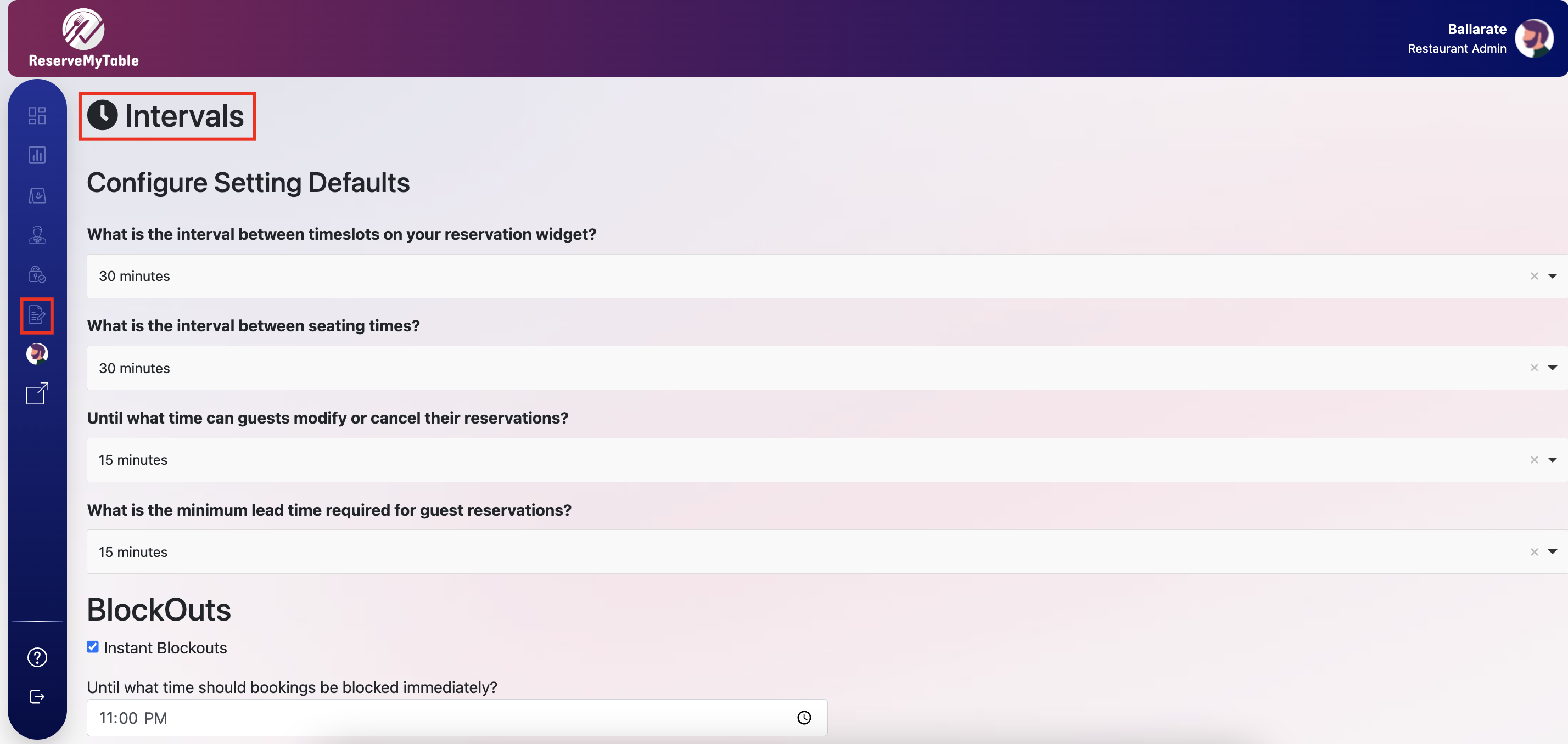 Yes, you can. Use the "Blockouts" option under Intervals section to block specific dates or time slots, such as holidays or private events, to avoid receiving reservations during that period.